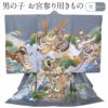男の子用は勇ましさや出世、大成を意味する柄が描かれ、落ち着いた色を基調とした男の子らしい装いです。