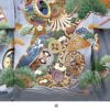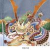 堂々と描かれた兜や雪輪には吉祥文様がふんだんに描かれ、お祝いの場に相応しいめでたい柄付けが印象的。