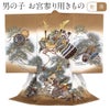 男の子用は勇ましさや出世、大成を意味する柄が描かれ、落ち着いた色を基調とした男の子らしい装いです。