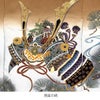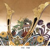 上品な気品感じられる茶色の生地に、豪華な刺繍や金彩を施した兜が堂々と描かれています。