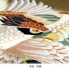 手描きならではの筆使いと繊細な刺繍が、一枚の絵画のような作品です。