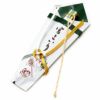 お子様の健やかな成長を祈るお宮参りの際に使用する、縁起物の小物です。 末広(扇子)には「末広がりに栄えるように」、白髪(麻の皮)には「麻のように丈夫に育ち、白髪が生えるまで丈夫に育ちますように」という願いが込められています。 お宮参りの際には麻の紐をお祝い着の紐にしっかりと結んで使用します。