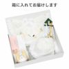 お子様の健やかな成長を祈るお宮参りに必要な、男の子用の正絹フード4点セットです。 日本製で、乳児の安全を守りために無ホルマリン加工が施されていますので、安心してご利用いただけます。 寿の化粧箱に入っていますので、贈り物としても最適な商品です。 【セット内容】 ●フード:柔らかで肌触りの良い、絹独特の生成りホワイトのフードです。 白の花レースも可愛く、高級感もあります。 ●涎掛け(よだれかけ):フードと同じ柔らかで肌触りの良い、絹独特の生成りホワイトのよだれかけです。 正面には鶴や若松の刺繍も施され、可愛く高級感もあります。 ●お守り袋:ベージュ系の錦織のお守り袋には、長寿を象徴する吉祥の鳥である「鶴」が織り込まれ、男の子用には白房がついています。 参拝した神社で頂いたお守りを入れる大切な袋です。 ●末広(扇子):末広がりで栄えるという、成長の願いを込めた扇子です。 赤ちゃんが一生お金に困らないようにとの願いを込めて頂いた「ひも銭」をぶら下げる麻の紐がついています。 ●付属:お宮参りのしおり