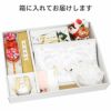 お子様の健やかな成長を祈るお宮参りに必要な、男の子用フード7点セットです。 日本製で、乳児の安全を守りために無ホルマリン加工が施されていますので、安心してご利用いただけます。 鶴と寿の化粧箱に入っていますので、贈り物としても最適な商品です。 【セット内容】 ●フード:真っ白な生地に長寿を象徴する鶴の地模様が織り込まれたフードです。 白の花レースも可愛く、高級感もあります。 ●涎掛け(よだれかけ):フードと同じ真っ白な地に鶴の地模様が織り込まれたよだれかけです。 正面には鶴や若松の刺繍も施され、可愛く高級感もあります。 ●お守り袋:ベージュ系の錦織のお守り袋には、長寿を象徴する吉祥の鳥である「鶴」が織り込まれ、男の子用には白房がついています。 参拝した神社で頂いたお守りを入れる大切な袋です。 ●末広(扇子):末広がりで栄えるという、成長の願いを込めた扇子です。 赤ちゃんが一生お金に困らないようにとの願いを込めて頂いた「ひも銭」をぶら下げる麻の紐がついています。 ●犬張り子:犬は出産が軽く、子供の成長が良いということで、お子様が子犬のように元気に育つ様にと願いが込められています。 ●でんでん太鼓:でんでんと鳴る音が子供を喜ばせるだけでなく、悪い精霊を払うと考えられていた縁起物です。 表裏がなく、全て丸で作られていますので角のない穏やかでまろやかな正確に育つ様にとの願いも込められています。 ●誕生記:誕生祝から七五三までの儀式を書き込める、お子様の記念に残したい誕生記です。 食べ初め式や七五三手形も残せます。 ●付属:お宮参りのしおり