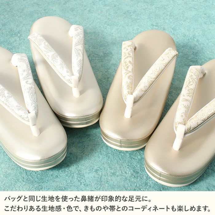 他の画像を見る 痛くなくて歩きやすい、初めての方にも安心の履き心地 草履バッグセット 留袖用 訪問着用 華三彩 キステオリジナル Sサイズ Mサイズ Lサイズ LLサイズ ゴールド シャンパンゴールド シルバー 吉祥紋 織り生地 2枚芯 日本製 当店特別価格 ¥ 29,700 税込 カートに入れる お気に入りに登録する