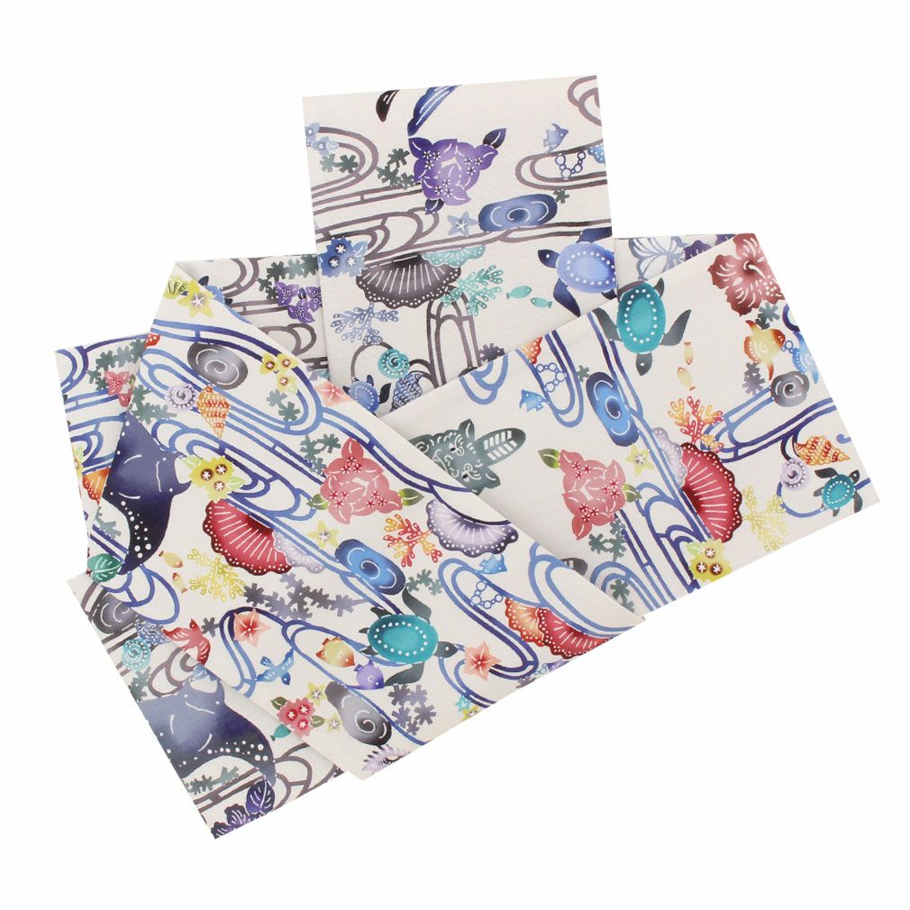 他の画像を見る 【最短日お届け】《博多帯》締めやすく帯崩れしにくい カジュアルなお着物に 半幅帯 帯 本場筑前博多織 小袋帯 リバーシブル 正絹 薄グレー 水色 水族館 協和織工場 日本製 当店特別価格 ¥ 57,200 税込 お気に入りに登録する