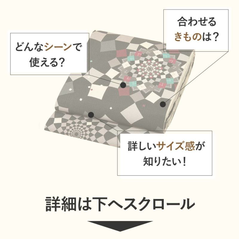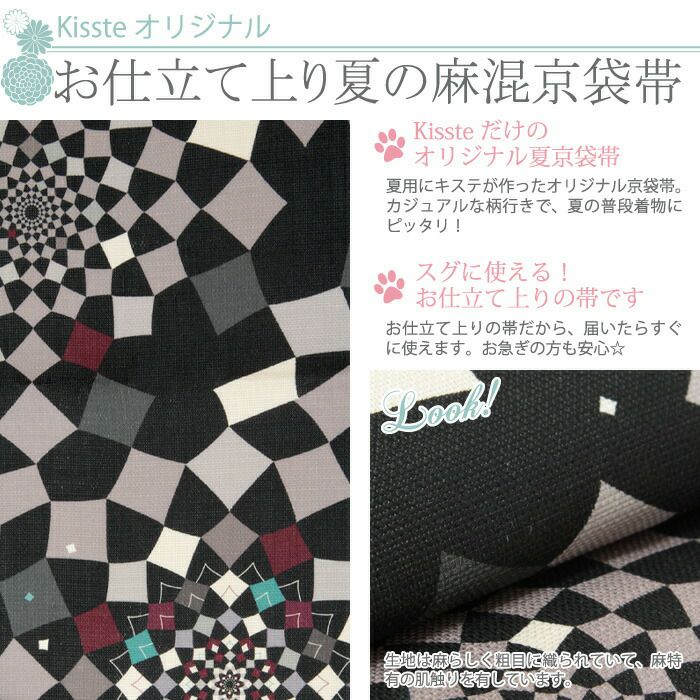 他の画像を見る 【最短日お届け】≪キステオリジナル≫初夏 盛夏 晩夏まで 暑い時期の単衣や薄物のお着物に 夏帯 京袋帯 <ブラック/カレイドスコープ> 絹 麻 日本製 <キステオリジナル> 仕立て上がり 当店特別価格 ¥ 41,800 税込 カートに入れる お気に入りに登録する
