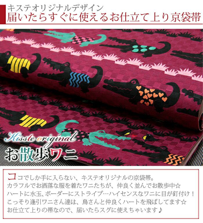 他の画像を見る 【最短日お届け】≪キステオリジナル≫小紋・紬・色無地などカジュアルな着物に 正絹 お仕立て上り 京袋帯 *翌日配送対応* キステオリジナルデザイン*お散歩ワニ* 当店特別価格 ¥ 41,800 税込 カートに入れる お気に入りに登録する