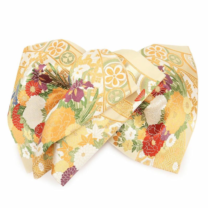 他の画像を見る 《お仕立て上り・送料込》【最短日お届け】振袖などのフォーマルなお着物に アウトレット 袋帯 振袖用 帯 成人式 < 金 / 束ね熨斗に花 > 西陣織 < 岡文織物 > 仕立て上がり 新品 当店特別価格 ¥ 37,400 税込 (0) カートに入れる お気に入りに登録する