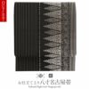 届いて直ぐに使えるお仕立て上がりの八寸名古屋帯です。 本場筑前博多織は、その締め心地のよさから多くのきもの愛好家に好まれているお品です。 なかでも協和織工場の帯は、その個性的な柄付けと細やかな織りが人気のワンランク上の作品です。 こちらの帯は落ち着いた黒の地に縞や菱の模様が丁寧に織り上げられております。 絹糸100%で織り上げているため、通気性や吸湿性に優れ、季節を問わずお使いいただけます 本商品は松葉仕立てになりますので、ご利用される方の身長や体格で前腹の幅を調整して頂ければ、よりバランス良くご着用して頂けます。 博多織独特の絹鳴りと正絹ならではの柔らかな光沢をもつ帯は、人と差がつく着姿を演出します。 観劇、芸術鑑賞、ショッピング、ちょっとしたお出掛け等幅広くご活用いただけます。 日常のお洒落に本場筑前博多織の帯をご堪能下さい。