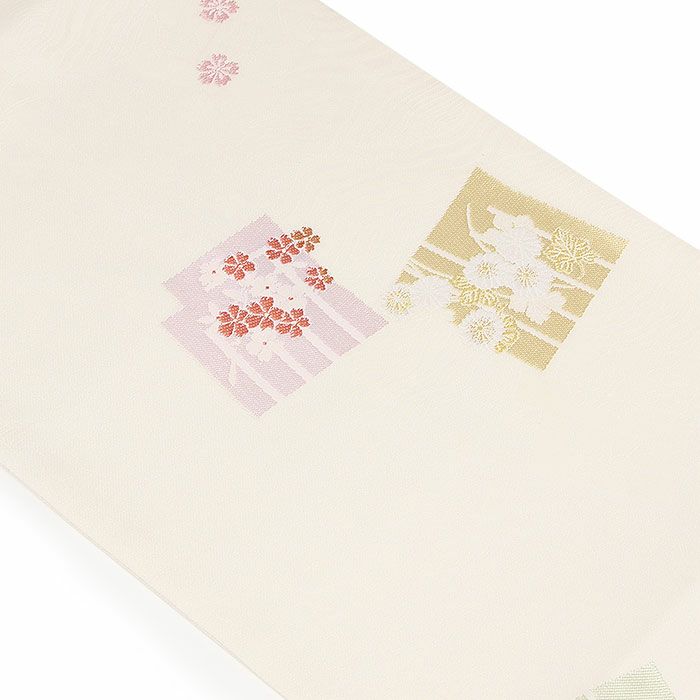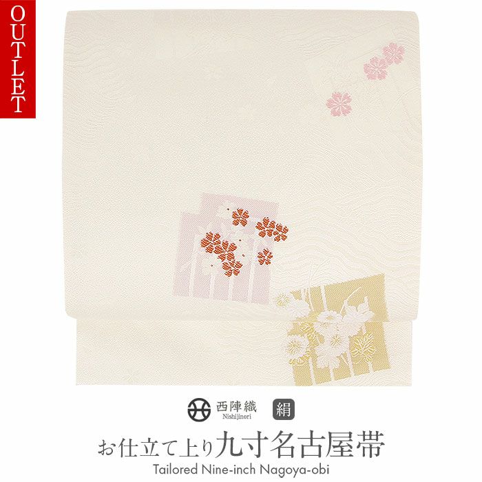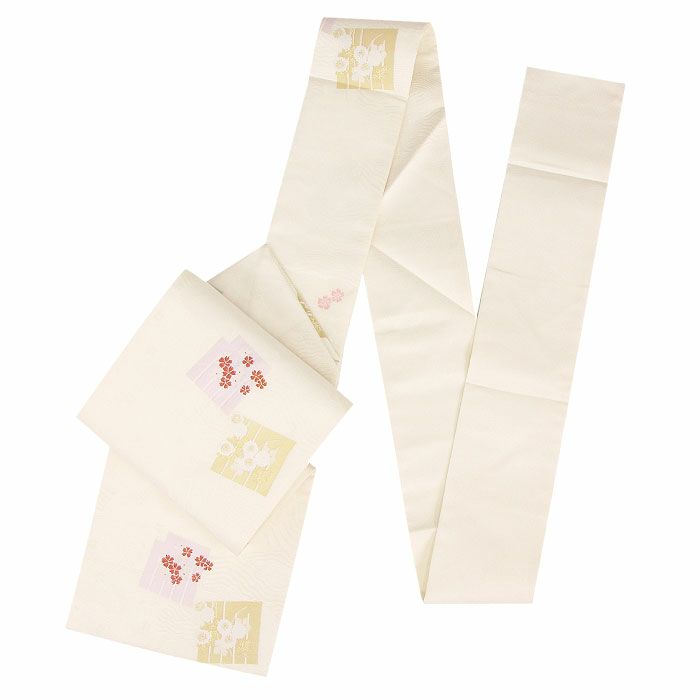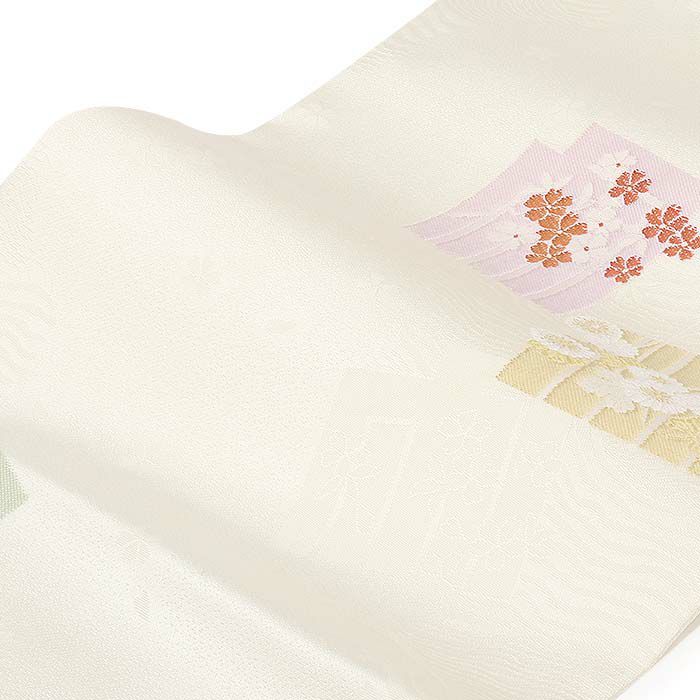 名古屋帯 生成り 桜 源氏香 西陣織 京都イシハラ 普段用 九寸 仕立て上がり 絹 未使用 新品 春 秋 冬