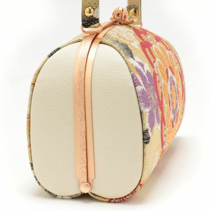 ※実際の商品と同じ色合いに画像修正をしておりますが、環境やモニターの違いにより多少色の違いが出て来ることがあります、ご了承ください。 ※帯地を使用した商品は、商品の性質上どうしても糸のほつれが発生してしまいます。商品不良ではございませんので予めご了承くださいませ。 ※生地の取り方により、柄の出方が異なる場合がございます。 また、製造時期により金具のデザインが若干変更となる場合がございます。 ※製造するうえで十分に注意しておりますが、どうしても傷や汚れ、染料飛びや染料欠けなどができる場合がございます。また、金具部分は金属の性質上、変色やくすみ、傷や汚れなどがある場合がございます。予めご了承のうえ、お買い求めください。