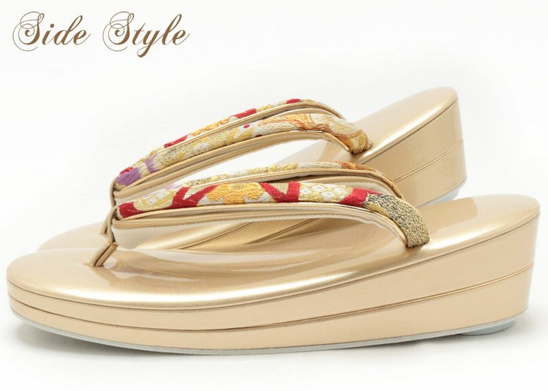 バッグ・花緒:ゴールド・レッド・パープル 草履台:ゴールド