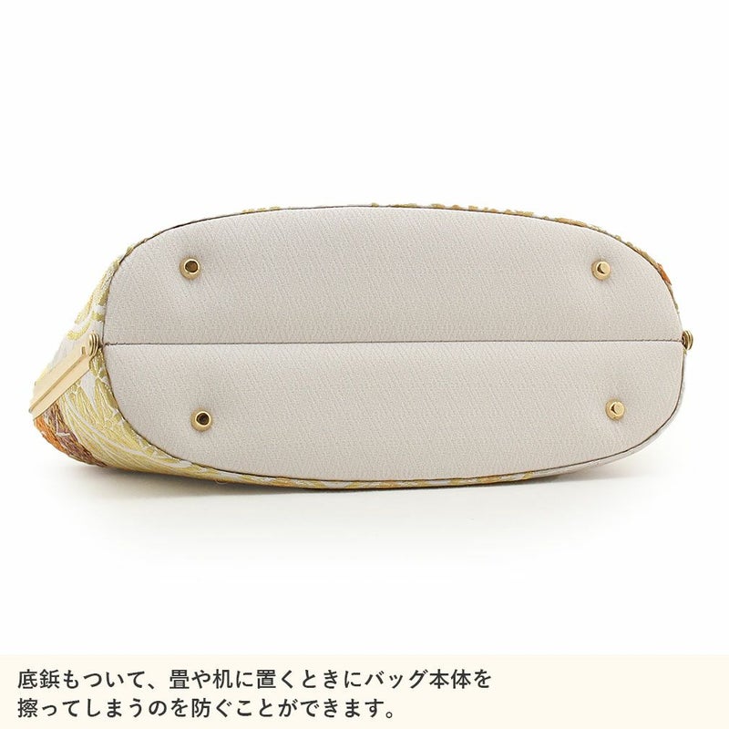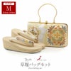 伝統と格調誇る【浅草匠】ブランド。 高級ブランドの「紗織」で有名な浅草メーカーが誇る、最高級ブランド【浅草匠】の草履バッグセットです。 ホワイトシルバーをベースに優雅な華紋や菱文様がとても映える高級感あふれるデザイン。 京都西陣の正絹帯を草履の花緒とバッグに使用した、豪華な草履バッグセットになっています。 水や汚れを弾く「パールトーン加工」済みなので安心して使うことができます。 草履はブリジストンが開発した衝撃吸収材の「ZULEN」を採用した特殊ウレタンフォームで、ソフトな足触りで歩行時の衝撃を連続吸収し、長時間の歩行による足の疲れを軽減します。 芯には高級感を演出する金ラインが施され、前が2枚芯、後ろが3枚芯のタイプの草履は、前から対面すると慎ましやか、後ろから見ると格調高い印象。 かかとの高さは約6cmと程良いヒール高で、より一層お着物姿を美しく演出します。 バックのサイズは折り畳みのお財布や携帯電話などお祝いの席に必要な貴重品が入るちょうどよい大きさ。 華やかな式に相応しい高級ブランドのバッグですので、ご婚礼時の留袖を始め、訪問着、付け下げ、色無地などのフォーマルシーンに気兼ねなくご利用いただけます。 最高級ブランドの「浅草匠」をぜひお客様の目でお確かめ下さい。
