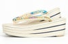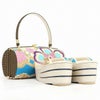 彩小径謹製の帯地を使用した振袖用草履バッグセットです。 バッグ生地と花緒には、上質な金糸の入った帯地で紋様が織り込まれ、振袖姿に相応しい可愛さと華やかさを併せ持つデザインです。 カラフルなデザインがワンポイントとなり、バッグに華を添えます。 金糸が角度によって煌びやかな輝きを放ち、お着物姿をさらに豪華に演出します。 草履にはバッグと同じデザインの花緒が統一感をプラスし、より豪華な佇まいに。 また、芯と芯の間には高級感を演出する金ラインが入った3枚芯。 クッション加工が施されており、歩きやすくとても履き心地がよく足への負担を軽減します。 かかとの高さは約6.5cmとハイヒール草履なので振袖の着姿をスタイルよく魅せてくれますよ。 バッグの容量は、お財布や携帯電話などが入る程良い大きさ。 成人式の振袖を始め、卒業式の袴など華やかな着姿にご利用いただけます。 年代も問わず、末永くご愛用いただける最高級ブランド「彩小径」をぜひお客様の目でお確かめ下さい。