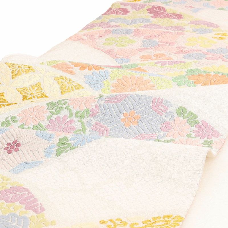 ●実際の商品と同じ色合いに画像修正をしておりますが、環境やモニターの違いにより多少色の違いが出て来ることがあります、ご了承ください。 ●生地の取り方により、柄の出方が異なる場合がございます。 ●こちらの帯はすでにお仕立てが済んでいる帯です。 ●お仕立ては【袋帯仕立て】となります。