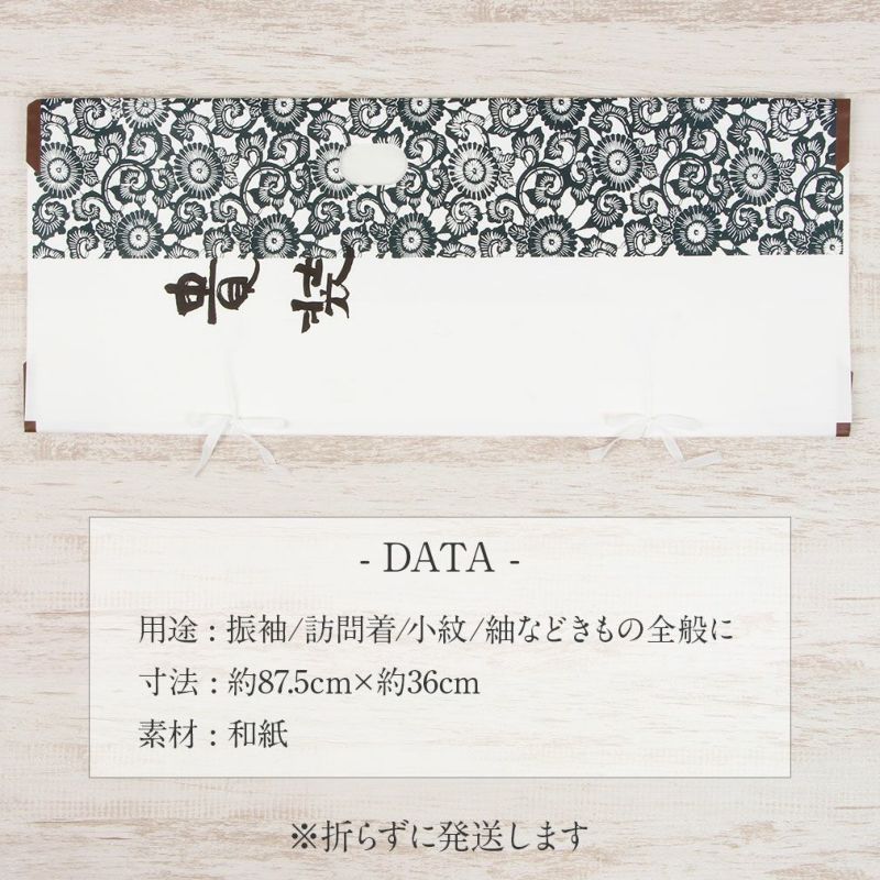 楮(こうぞ)と呼ばれる繊維を漉き入れて作られた雲竜和紙を用いて作ったこだわりの文庫(たとう紙)をご用意いたしました。 爽やかな白地に藍色で唐花が描かれた、シンプルながら美しい柄行きです。 大切な衣装の保管に欠かせない文庫(たとう紙)は、通気性や吸湿性に優れており、カビ等から守り美しく保管します。 たとう紙には薄紙が付いており、大切な衣装をほこりなどから守る役割があります。 また、セロファン付き小窓が付いているので収納した衣装の柄がひと目でわかるので重ねて収納しても探しやすい作り。 結び紐は結び目がきれいに作れるため、見た目にも美しくすっきりと収納することができます。 振袖や留袖、訪問着はもちろん、大切なお着物全般の保管におすすめです。 衣替え等のタイミングで取り換える際に、上質なたとう紙で気分を新たにしてみはいかがでしょうか。