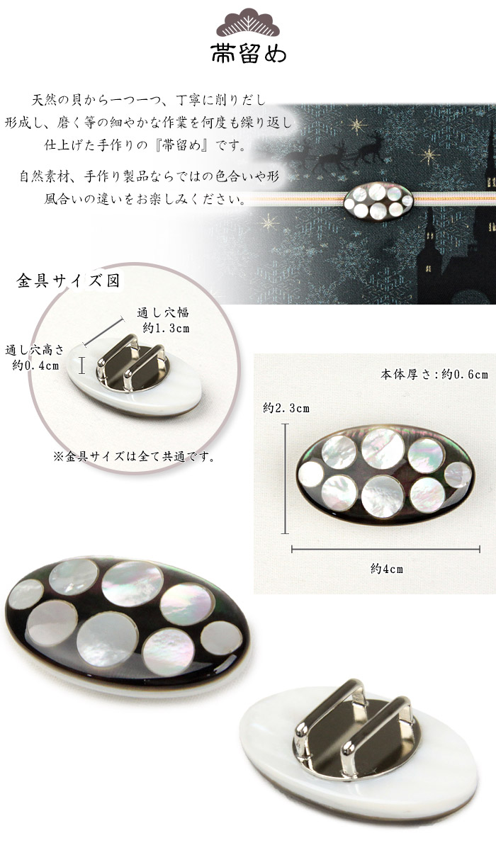 3. 天然素材 帯留め オーバルドット * 白蝶・黒蝶貝