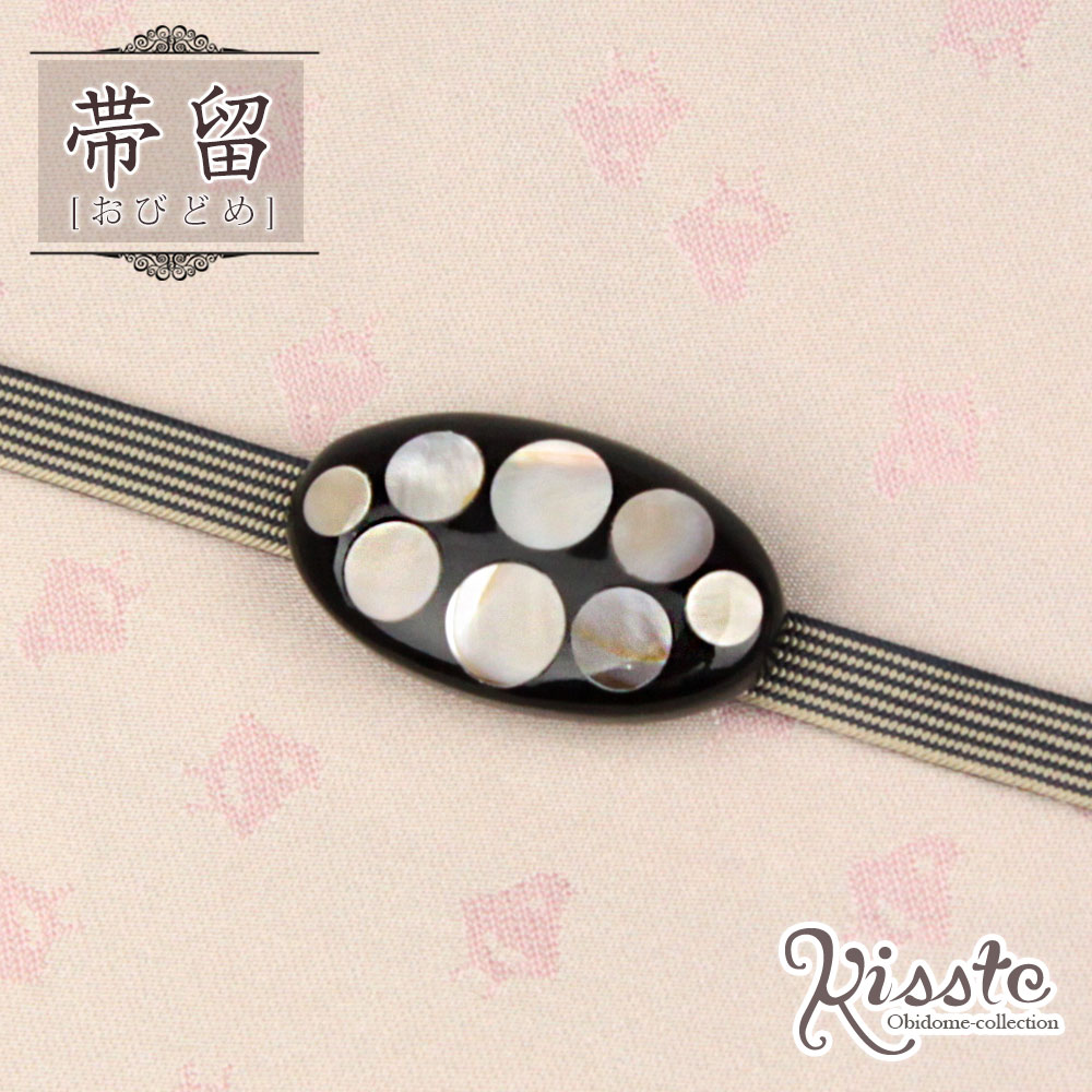 天然素材 帯留め オーバルドット * 黒水牛・ピンク