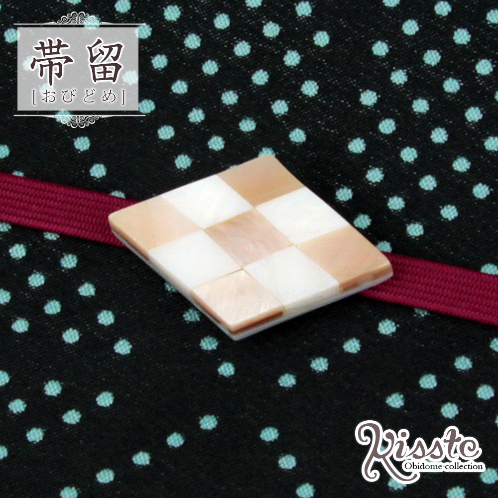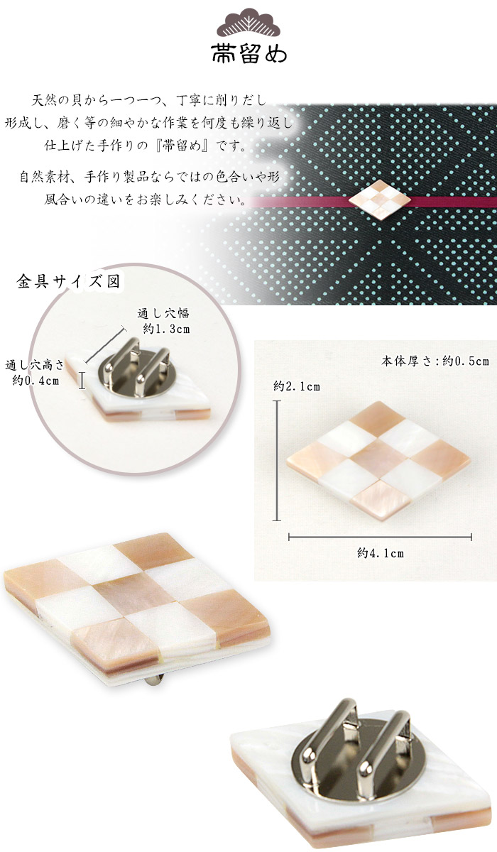 天然素材 帯留め モザイク ひし形 * ピンク・白貝
