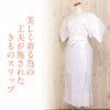 美しく着るための工夫が施されたT.P.O着物スリップです。 ストレッチ性があり動きやすいスリップに、肩下パットや居敷当てなどの機能も充実した多機能スリップ。 肩下のくぼみを整えるパットが付属しており、着脱可能なので必要に応じて補整できます。 ふっくらラインを整えることで着姿を美しくします。 襟元はバイアス衿になっており、体に沿うようにフィットするので衿まわりが綺麗に整います。 結ぶ紐は太目になっており、食い込みにくく締め付け感が苦手な方にもオススメです。 上半身は吸水性がある綿100%、おなか、背中周りには弾性さらし加工が施され、縦に伸び縮みするので動きやすいです。 脇の下には汗取りパットもついてり、汗をかきやすい方や、蒸れやすく汗ばむ季節でも安心。 腰回りにはさらし100%の敷居当てがついており、冬は保温として、夏は汗取りとして効果を発揮します。 下身頃には旭化成のベンベルグを使用しました。 キュプラ100%ですので、吸湿性、放湿性に優れ、すべりがよく優しい肌ざわりが特徴的です。 ドレープ性があり、静電気が起きにくいので、まとまりつかず快適な裾さばきをサポートします。 しっかりと仕立てられた安心の日本製。 オールシーズン快適に使える便利なスリップで素敵なきものライフをお楽しみくださいませ。