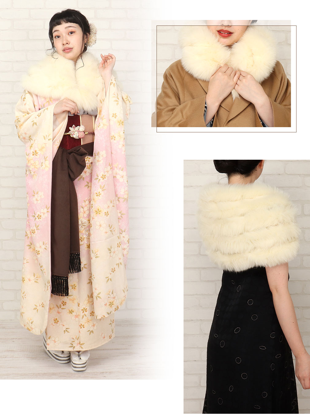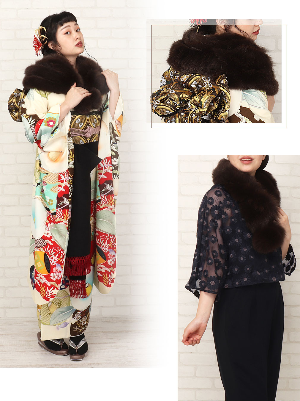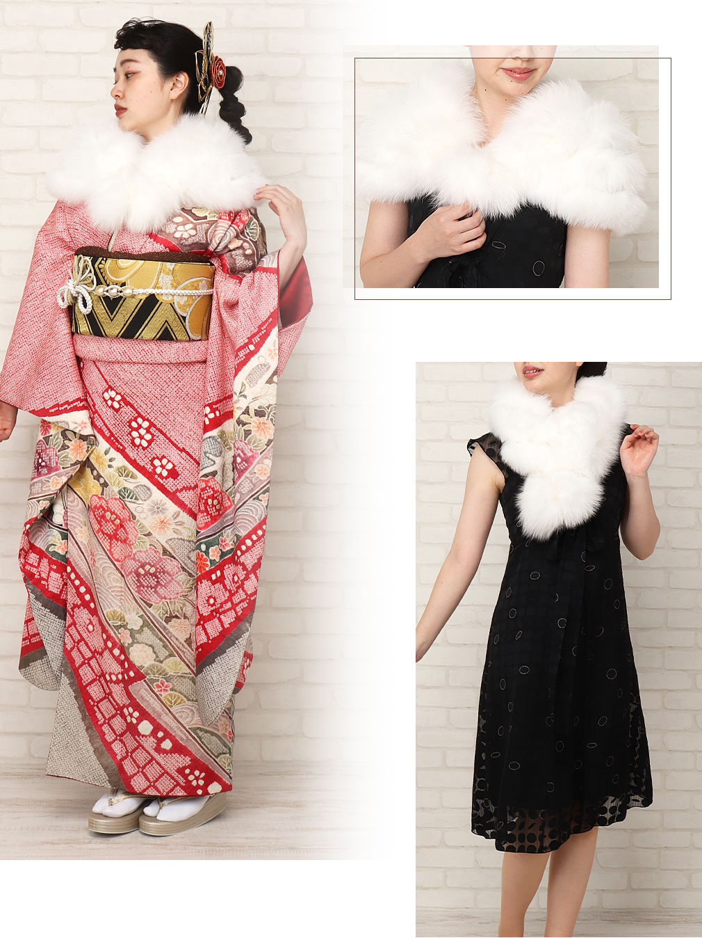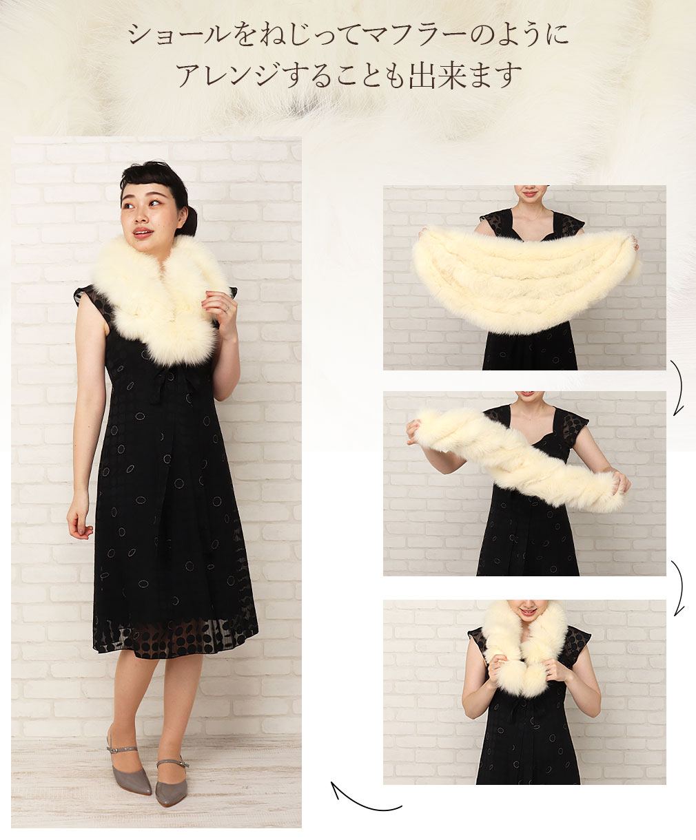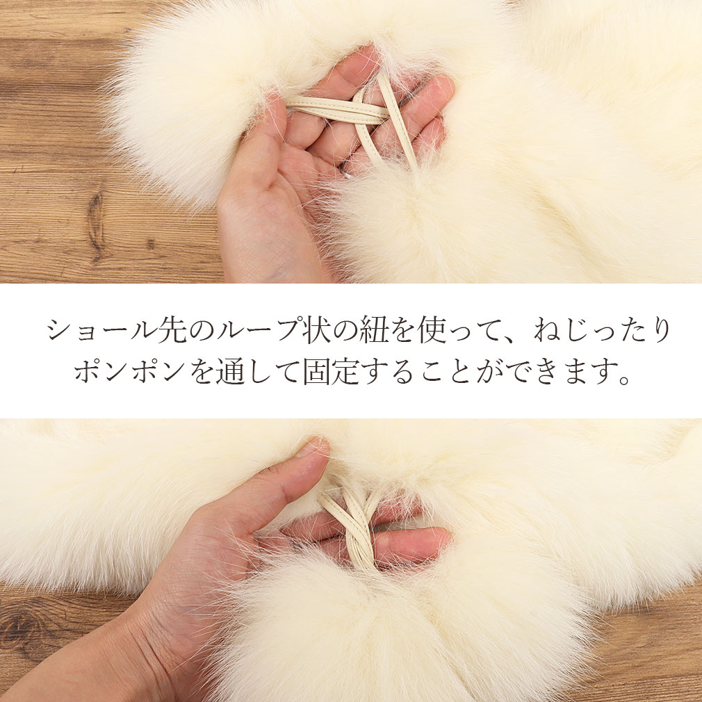 北欧諸国で生産された最高品質の毛皮に与えられるブランド、SAGA FURSのリアルファーショールです。 5連の細長いフォックスファーで構成されているので、ボリューム感もありゴージャスな雰囲気をまとった逸品。 表裏がなく全面にリアルファーを使用しており、裏地も無いため襟元に沿いやすく、ふわふわで温かい肌触りです。 縫製は丁寧な日本製なので安心です。 留め方は、ショール先のループ状の紐を使って先端のポンポンを通して固定することができます。 ショールをねじってマフラーのようにアレンジすることもできます。 ゴージャスながらシンプルなデザインなので、成人式はもちろん、卒業式や振袖着用時の結婚式、洋服のドレス姿などにも幅広くお使いいただけます。 【SAGA FURS / サガファーズとは】 スカンジナビア半島周辺の北欧諸国、スウェーデン・ノルウェー・フィンランド・デンマーク等で生産される最高品質を保障する登録商標のブランドです。 ミンクとフォックスでは世界最大の生産量を持ち、世界9ヵ国に支部を持つ組織で認定された毛皮のみ、SAGAブランドを付けることができます。