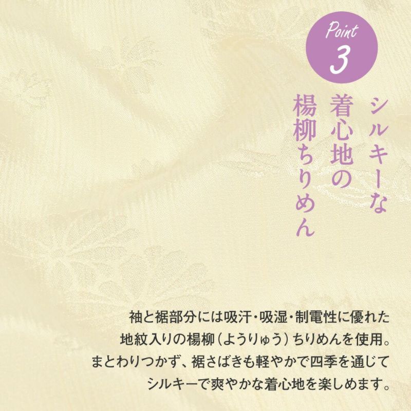 他の画像を見る 豊富なサイズ 初夏 盛夏 晩夏 の単衣 薄物の時期に 着物スリップ 夏用 夏 単衣 薄物 夏着物 itomi 抗菌 アセトール天竺 キュプラ 日本製 S SO M MO L LO LL 3L 白 レディース 当店特別価格 ¥ 9,790 税込 (0) カートに入れる お気に入りに登録する