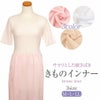 サラリとした裾さばきと快適な着心地の着物インナーです。 肌着と裾除けが一体型になったワンピースタイプで、簡単にご着用いただけます。 伸縮性と吸水性に優れたリブ編みの身頃は、汗を素早く吸い取り、速乾加工でサラっと快適に。 消臭加工も施されており、いやな臭いを抑えます。汗をかきやすい背中や脇の汗をさっと吸い取るのでお肌にまとわりつかず快適な着心地です。 肩甲骨あたりまである深い衿ぐりで、肌着が見えづらくしっかり衿抜きしたい方にもオススメです。 裾除けは巻きスカート状になっており、ポリエステル100%のさらっとした生地で、足さばきがよく歩きにくさを軽減します。 3色の優しいカラー展開と、3サイズご用意しました。快適なきものライフの一員として、ぜひお試しください。
