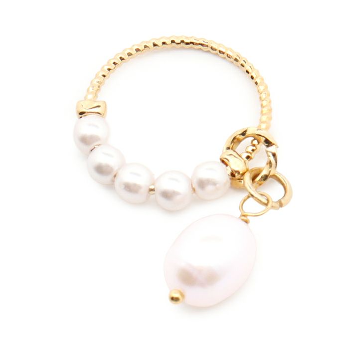 ゴールドリングにフラワードロップチャーム