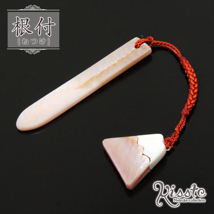 天然の貝から一つ一つ、丁寧に削りだし、形成し、磨く等の細やかな作業を何度も繰り返し、仕上げた手作りの『根付』です。