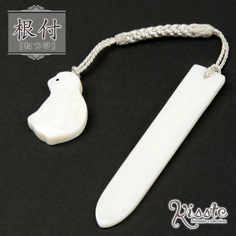 天然素材 根付け 干支「申」 * 白貝