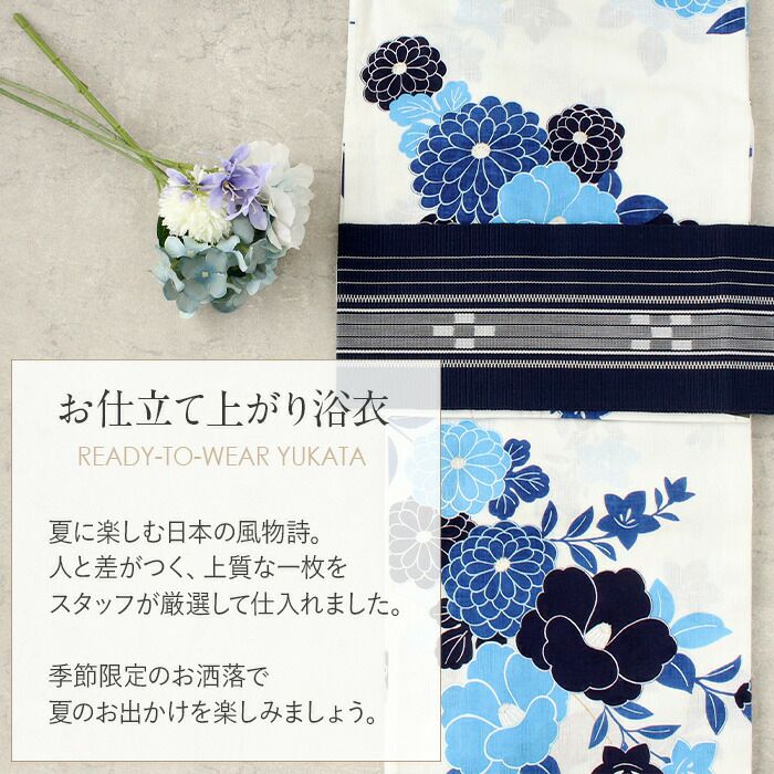 他の画像を見る ≪ViVi Classyブランドのお仕立て上がり浴衣≫こだわりの浴衣で夏を満喫 浴衣 単品 《ViVi Classy》お仕立て上がり浴衣 <生成り・紺/大花> 綿100% SALE 定価 ¥ 32,780 のところ 当店特別価格 ¥ 29,700 税込 (0) カートに入れる お気に入りに登録する