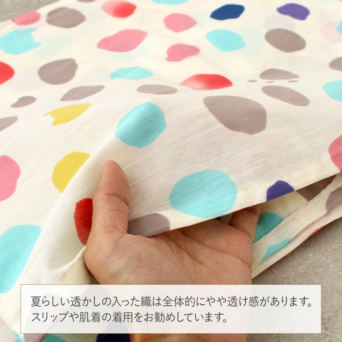 他の画像を見る こだわりの浴衣で夏を満喫 浴衣 単品 《岡重》 クリーム地に青・水色・紅系 縞に丸 綿100% 綿絽 SALE 定価 ¥ 38,500 のところ 当店特別価格 ¥ 33,000 税込 (0) カートに入れる お気に入りに登録する