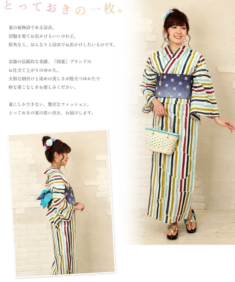 京都の伝統的な老舗、「岡重」ブランドのお仕立て上がりのゆかた。