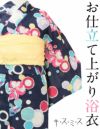3. 浴衣 単品 《キスミス》お仕立て上がり浴衣 <ネイビー/大花にサークル> 綿100%