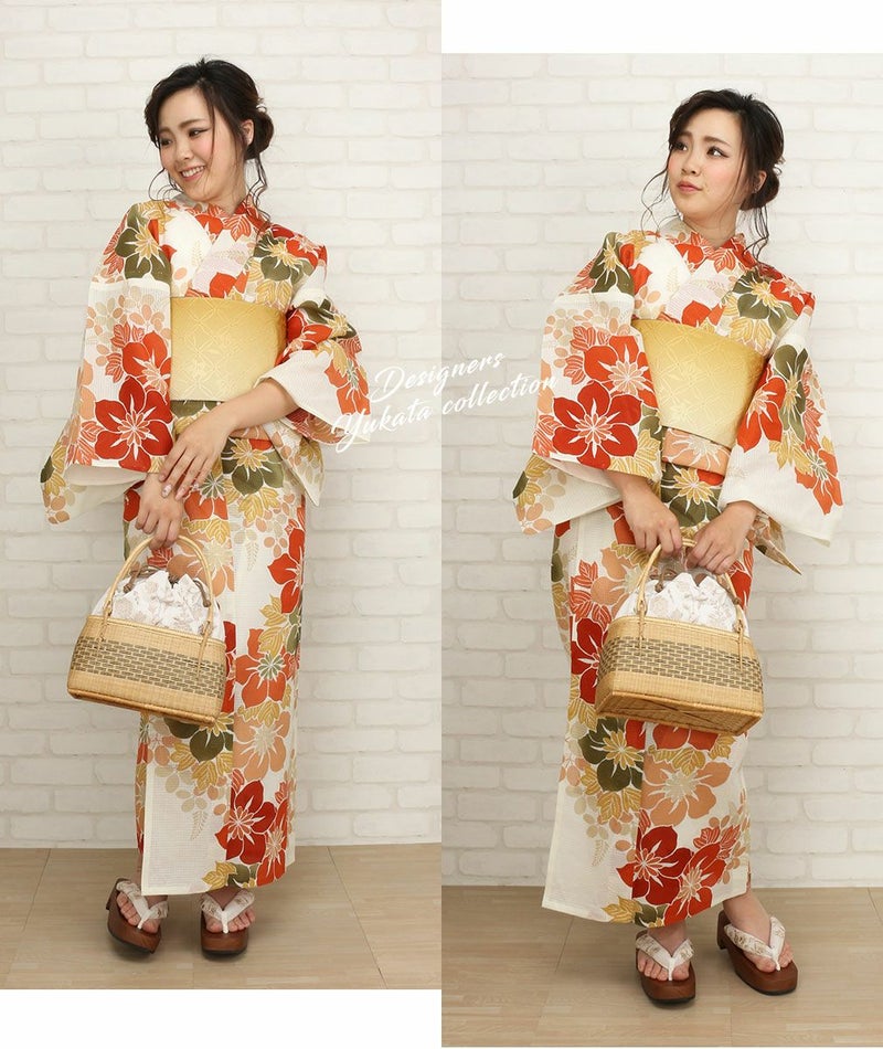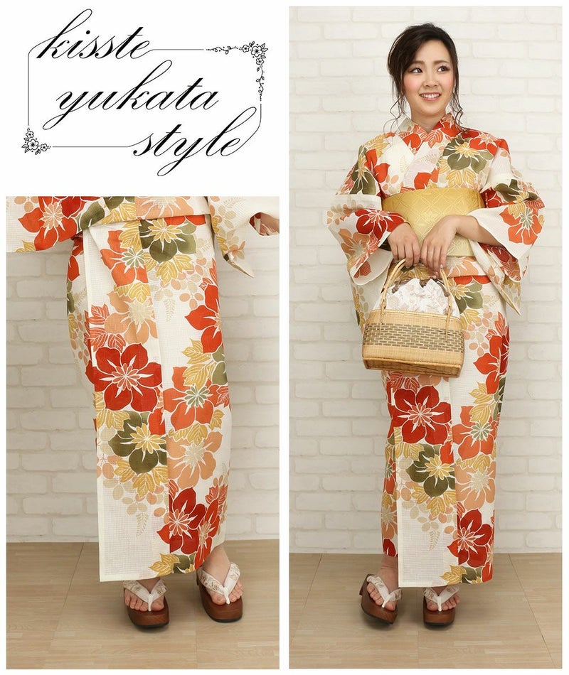 浴衣 単品 《芸艸堂》お仕立て上がり浴衣 <生成り色・橙色/鉄線模様> 桂友同机会 綿100% 日本製