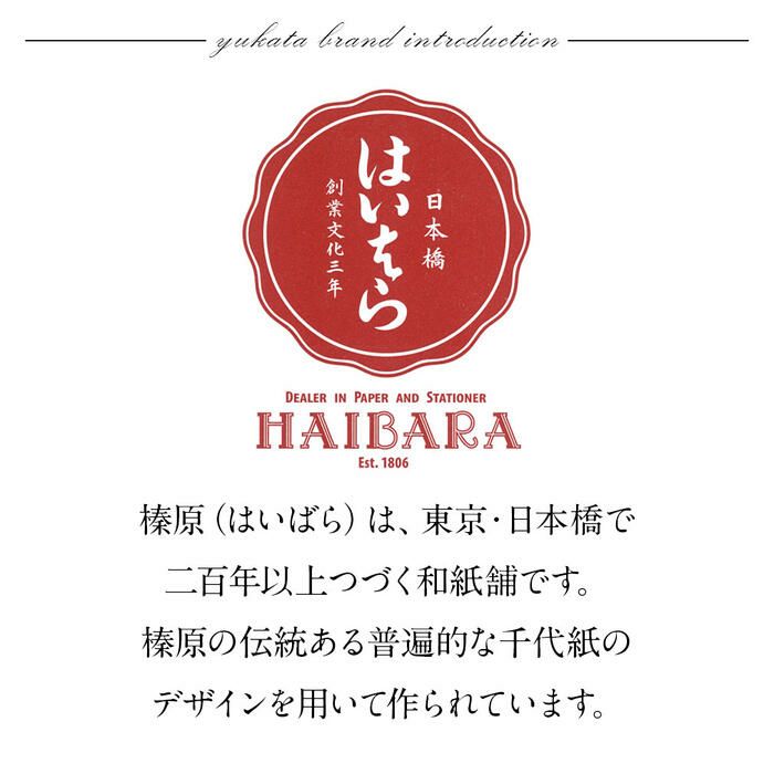 ◆はいばら◆ 榛原(はいばら)は、東京・日本橋で二百年以上つづく和紙舗です。 榛原の伝統ある普遍的な千代紙のデザインを用いて作られます。 そんなはいばらがデザインに携わって完成した浴衣。 シックなグレーにはいばららしい千代紙柄を花取りで施したおしゃれなデザインです。 コーディネートしやすい色柄で、着る人の年代やお好みに合わせていかようにも着こなせる一枚でしょう。 こだわって選んだおしゃれな浴衣はぱっと目を引きますし、 浴衣を着て長い時間屋外を歩く花火大会や夏祭りこそ、気に入ったゆかたスタイルでお出かけしたいですね。 おしゃれで粋な装いを楽しみたい浴衣、ぜひお手に取っていただきたい浴衣です。