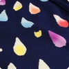 シックで落ち着いたネイビーの地色にカラフルに描かれた花火の雫。
