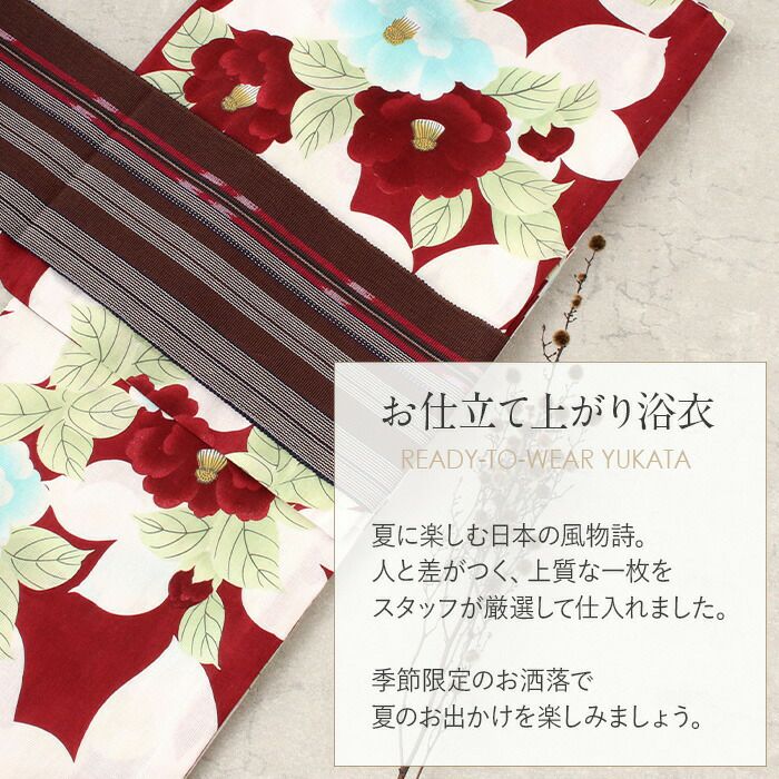 浴衣 単品 女性用<エンジ/椿>綿麻混浴衣