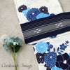 さわやかな白の地に、青の椿や菊が映える逸品。
