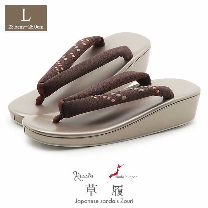 他の画像を見る 痛くない 歩きやすい、初めての方にも安心の履き心地 草履 レディース 普段用 カジュアル草履 L ベージュ ダークブラウン 薄茶 濃茶 ちりめん 縮緬 水玉 ドット刺繍 合皮 1枚芯 日本製 当店特別価格 ¥ 6,600 税込 カートに入れる お気に入りに登録する
