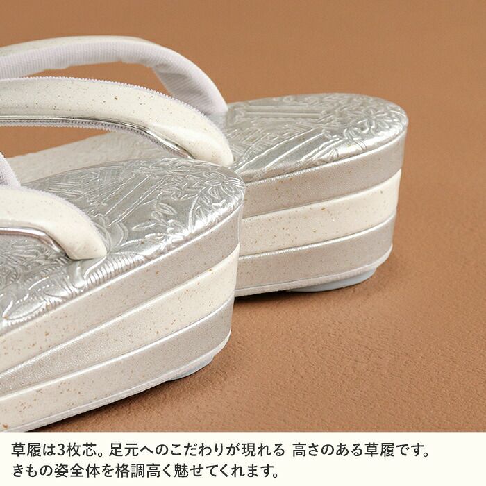 他の画像を見る 痛くなく歩きやすい、初めての方にも安心の履き心地 草履 留袖 訪問着 礼装用 レディース Lサイズ シルバー 銀 エナメル 型押し 牡丹 金銀たたき 2の3枚芯 日本製 優花緒 当店特別価格 ¥ 19,800 税込 カートに入れる お気に入りに登録する