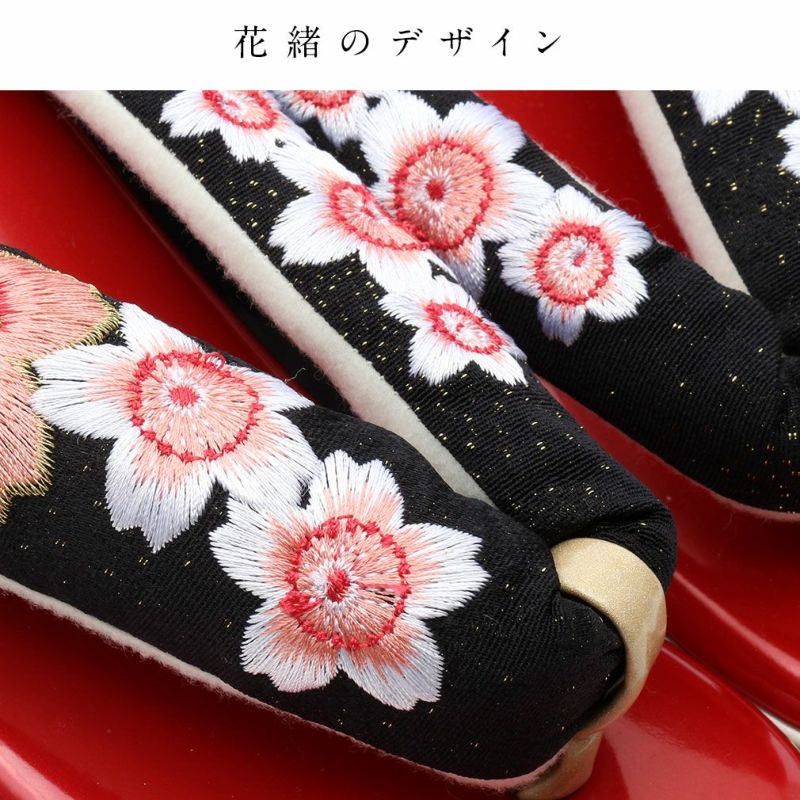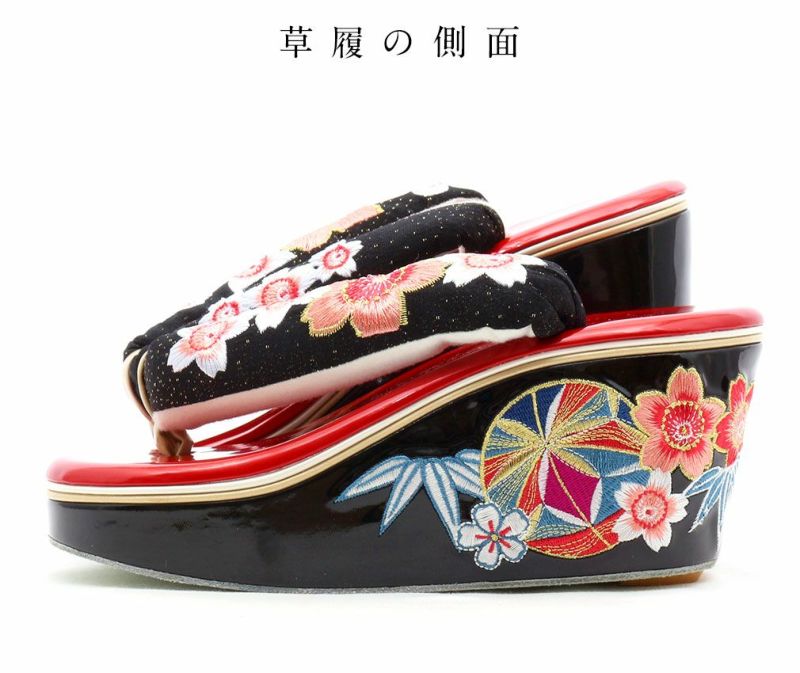 【アウトレット】草履 厚底 成人式 振袖 Lフリー黒 赤 桜 鞠 笹 刺繍 IKKO 草履 ぞうり 単品 着物