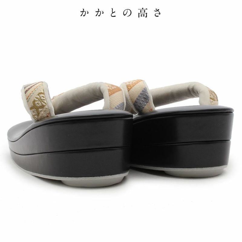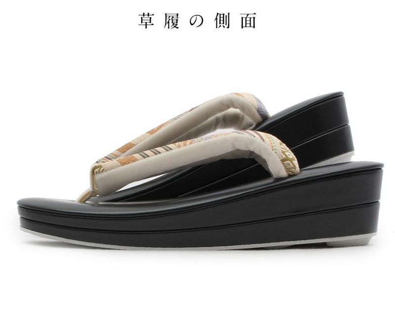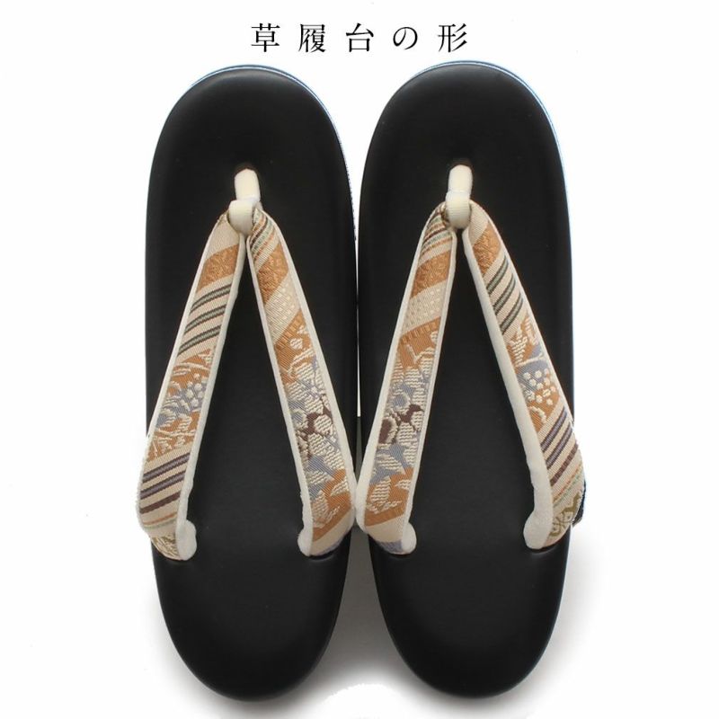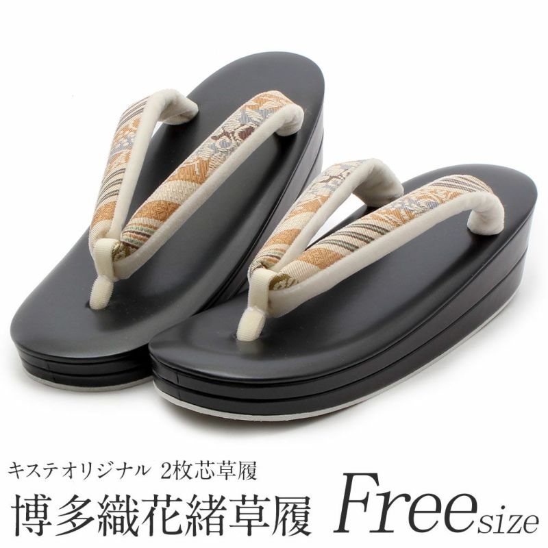 小紋や紬などのカジュアル着物にピッタリのお洒落な草履です。 花緒には博多織を使用し高級感があります。 キステスタッフが厳選して草履台と花緒を組み合わせた、他店にはない商品です。 草履台は広幅でクッション性があり、長時間履いても疲れにくい。 気軽なお出掛けにご利用下さい