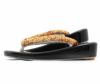 紬や小紋などにおすすめのお洒落用草履をご用意いたしました。 落ち着きのある黒の草履台はエナメルの素材を使用した品のある仕様になっております。 合成皮革で作られた草履は、お手入れもしやすく、雨の日も気軽にお使いいただけます。 シンプルな色合いなのでどんなお着物にも合わせやすく重宝します。 花緒には、桜のデザインが施され、お洒落に足元を彩ります。 かかとの高さは約5cmと程良いヒール高で、着姿を美しく魅せます。 草履台は柔らかなクッション加工になっており、衝撃にも強く長時間の歩行も疲れを感じさせない逸品です。 紬や小紋を始めとした街着やお洒落色無地などカジュアルな装いにピッタリの草履です。 いくつあっても困らない定番アイテム。きものライフの一員にいかがですか。