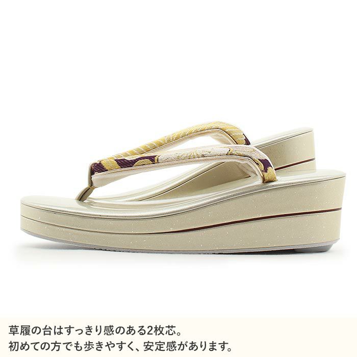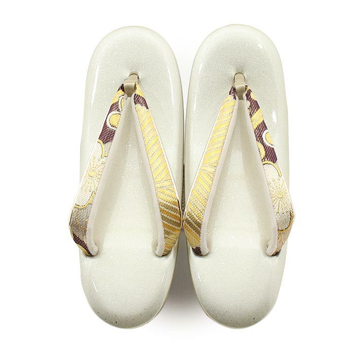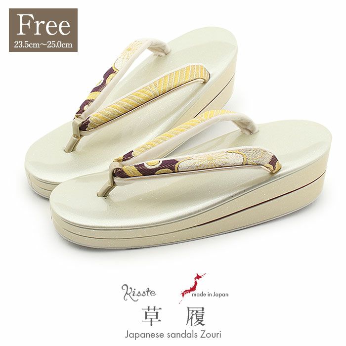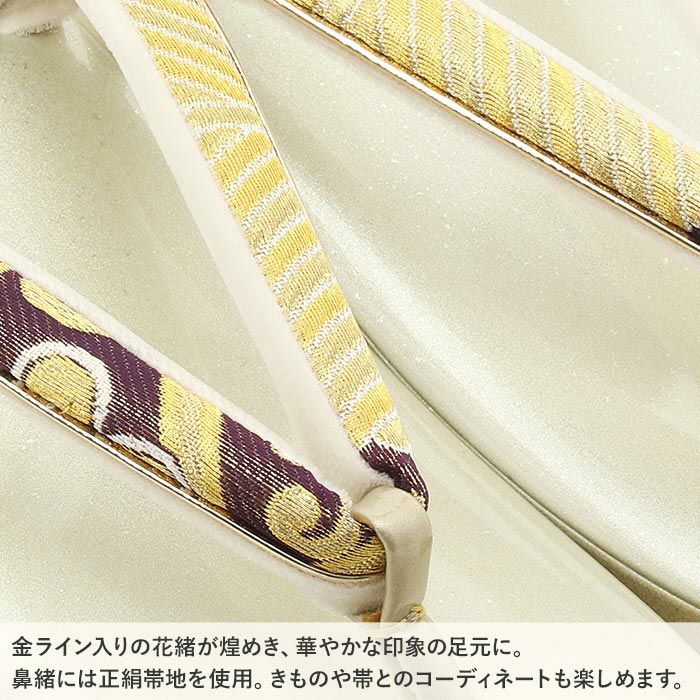 草履 成人式 振袖用 成人用 レディース 華三彩 フリーサイズ Lサイズ クリームシルバー 梅 華紋 正絹帯地 エナメル 2枚芯 日本製