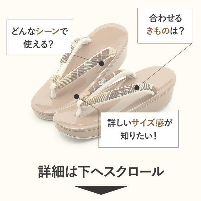 ■普段のお出かけに頼れる日本製草履■ 上品な艶感の草履台に、みんさー織の鼻緒を合わせた、落ち着きのある一足。 職人の手で丁寧に仕立てられた日本製ならではの確かなつくりです。 軽やかで履き心地が良く、日常のお出かけにも気軽にお使いいただけます。 ●みんさー織の鼻緒:伝統織物のあたたかみを感じる上品なデザイン。 ●ふっくら綿入りで足あたりやわらか、長時間でも痛くなりにくい仕様。 ●滑りにくいゴム底仕様で、雨の日でも安心。 ●草履裏は、かかと一体成型タイプで取れにくく、丈夫で長く愛用できます。 ●日本製の高品質仕立てで、細部まで美しく仕上げられています。 普段着の着物や小紋、紬などに合わせて。 カジュアルな装いに品よく馴染む、デイリー使いにおすすめの草履です。