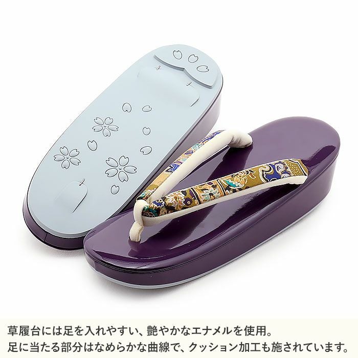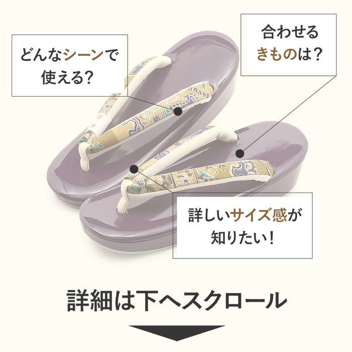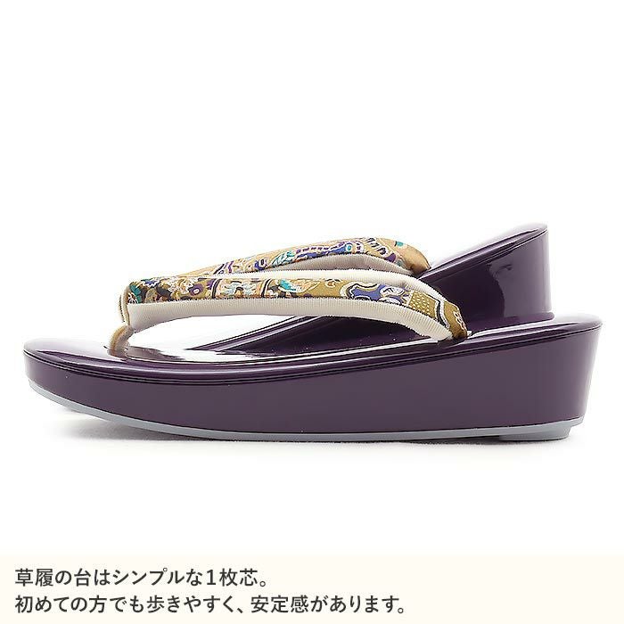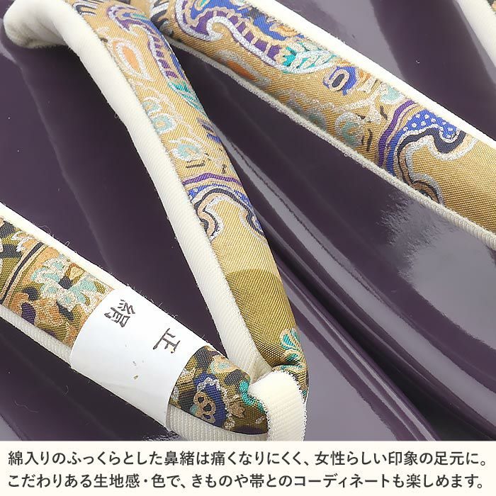 ■普段のお出かけに頼れる日本製草履■ 上品な艶感の草履台に、正絹生地の鼻緒を合わせた、落ち着きのある一足。 職人の手で丁寧に仕立てられた日本製ならではの確かなつくりです。 軽やかで履き心地が良く、日常のお出かけにも気軽にお使いいただけます。 ●正絹生地の鼻緒:絹のあたたかみを感じる上品なデザイン。 ●ふっくら綿入りで足あたりやわらか、長時間でも痛くなりにくい仕様。 ●滑りにくいゴム底仕様で、雨の日でも安心。 ●草履裏は、かかと一体成型タイプで取れにくく、丈夫で長く愛用できます。 ●日本製の高品質仕立てで、細部まで美しく仕上げられています。 普段着の着物や小紋、紬などに合わせて。 カジュアルな装いに品よく馴染む、デイリー使いにおすすめの草履です。