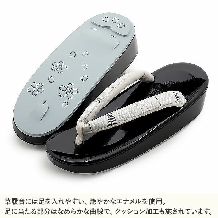草履台:ブラック 鼻緒:ホワイト・黒・水色