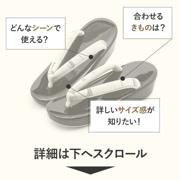 ■普段のお出かけに頼れる日本製草履■ 上品な艶感の草履台に、十日町紬の鼻緒を合わせた、落ち着きのある一足。 職人の手で丁寧に仕立てられた日本製ならではの確かなつくりです。 軽やかで履き心地が良く、日常のお出かけにも気軽にお使いいただけます。 ●十日町紬の鼻緒:伝統織物のあたたかみを感じる上品なデザイン。 ●ふっくら綿入りで足あたりやわらか、長時間でも痛くなりにくい仕様。 ●滑りにくいゴム底仕様で、雨の日でも安心。 ●草履裏は、かかと一体成型タイプで取れにくく、丈夫で長く愛用できます。 ●日本製の高品質仕立てで、細部まで美しく仕上げられています。 普段着の着物や小紋、紬などに合わせて。 カジュアルな装いに品よく馴染む、デイリー使いにおすすめの草履です。